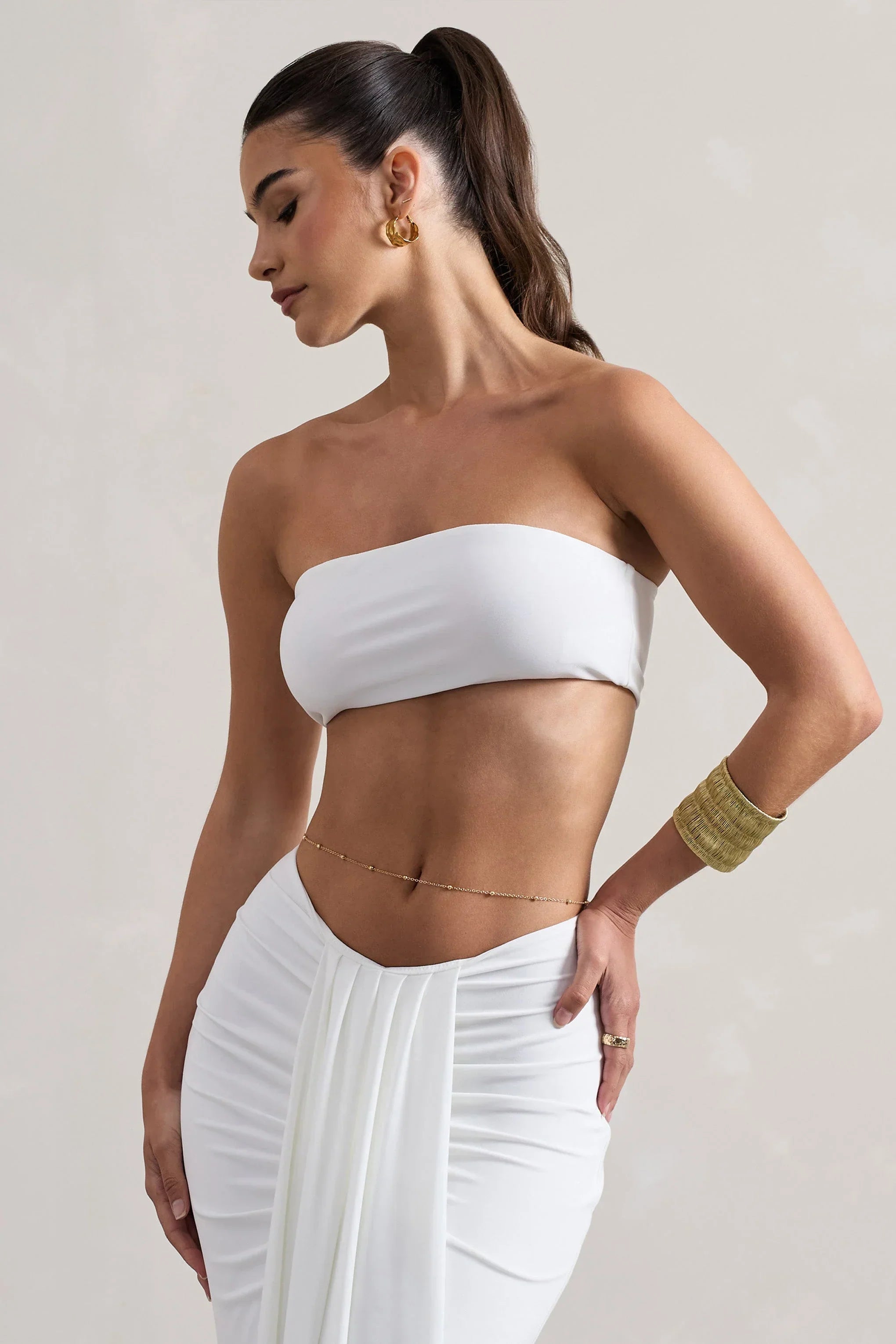 A fashion constant, every wardrobe need a little white top like Vada. Arriving in our dual-layered stretch jersey, this cropped bandeau can be dressed up or down for any occasion. Pair yours with out Vitality maxi skirt for a stunning sun holiday ensemble.
