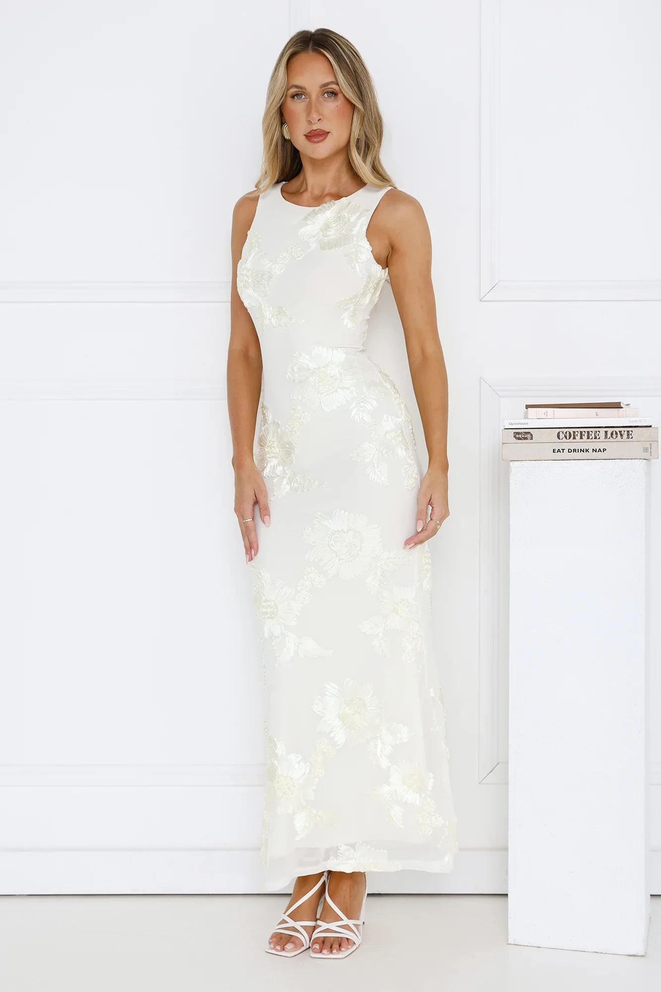 Step into the spotlight, lovely. With the Vibe To It Mesh Maxi Dress, all the attention will be on you. It features a gorgeous mesh silhouette with textured embroidery. Style with heels and curls!