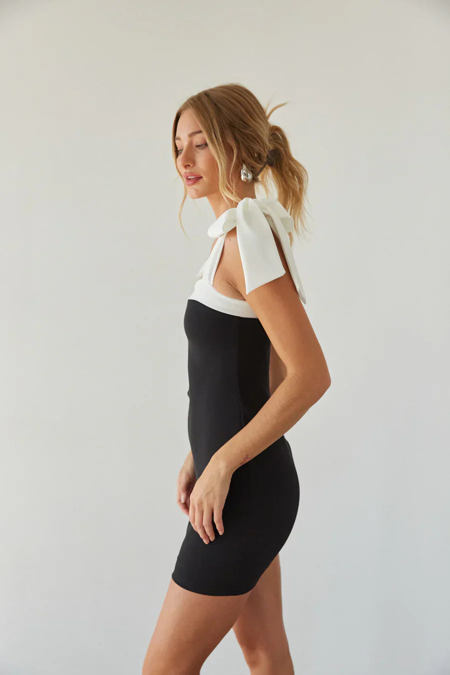 Timeless and classy, the Viola Contrast Bow Strap Mini Dress is Old Money embodied! This little black dress features a white contrast neckline and straps, tie bow detail, and flattering bodycon silhouette. Pair this mini dress with a chic pair of to complete the look!